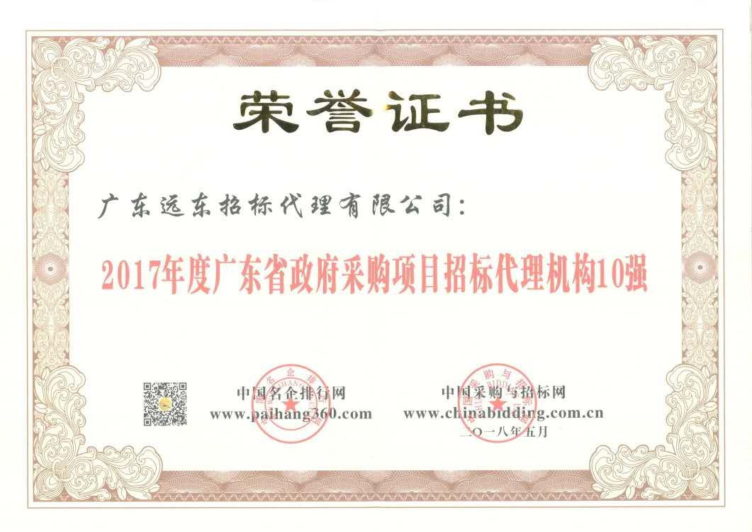 2017年廣東省政府采購項(xiàng)目招標(biāo)代理機(jī)構(gòu)10強(qiáng)