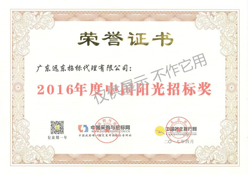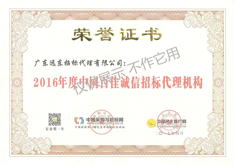 2016年度廣東省招標(biāo)代理機(jī)構(gòu)首選品牌